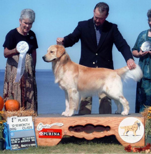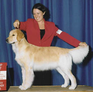 ![]() "Cherry" at 15mos winning a Puppy Sporting Group 1st at the International KC show in Austin (Owner-Handled by Melissa!) 6/03 |