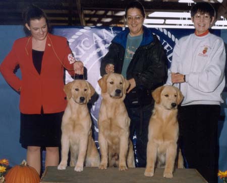"Cherry" ![]() ![]() "Cherry"& Mom, Lissa, "BJ" & Mom, Teresa, "Berry: & Mom, Patty TKC show (10/02) at just 6 months of age! |